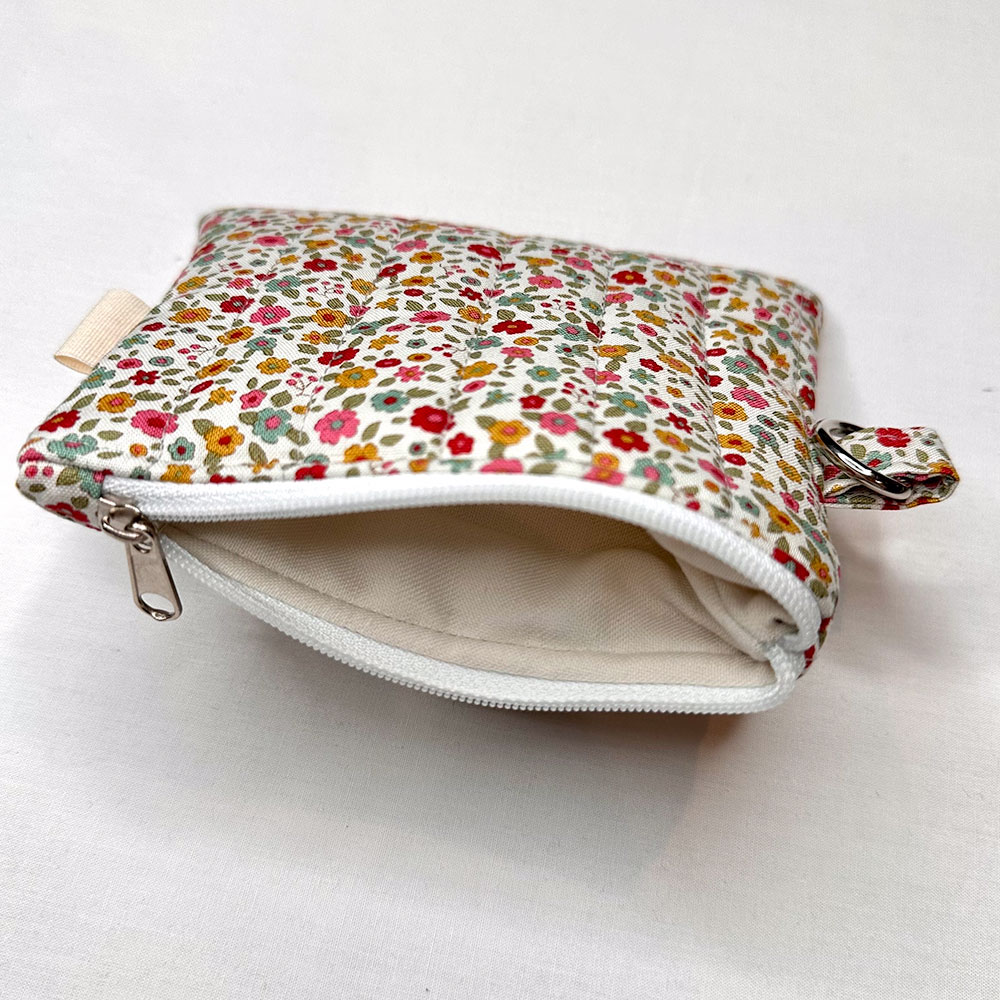 A hand-sewn quilted mini zipper pouch that’s perfect for keeping coins, cards and essentials together.